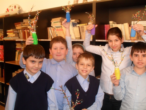 Descriere: Bei un Actimel, pastrezi recipientul, iei o crenguta uscata din copac, cateva bobite din hartie creponata, pui nisip in vas, cu arcet si acuarele il decorezi. Rezulta o minune! Asa au facut elevii clasei a IV-a A. Asa vad ei primavara! Optimist, nu?