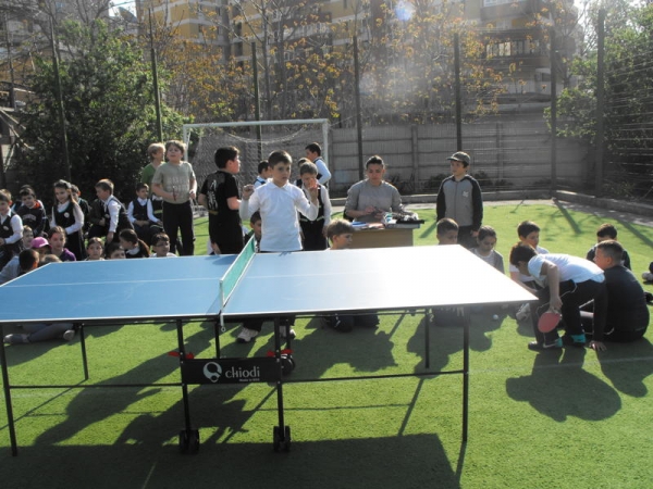 Descriere: Am organizat pe terenul de sport al scolii un concurs de ping pong la care au participat majoritatea membrilor clubului. Am beneficiat cu aceasta ocazie si de sprijinul doamnei prof. de ed. fizica Belu Anca.