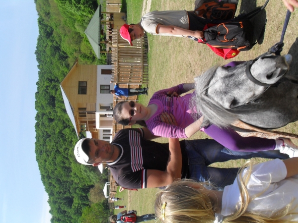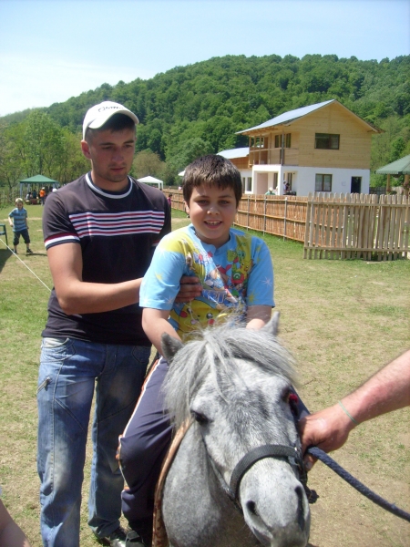 Descriere: Luam prima lectie de echitatie cu un .....ponei. Noi micuti, el micut.
