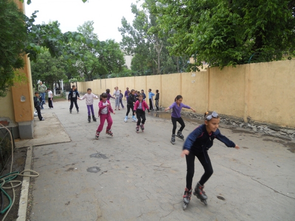 Descriere: Mai multi membri ai clubului au participat la o intrecere cu rolele in curtea scolii, joc preferat in timpul liber de majoritatea copiilor.