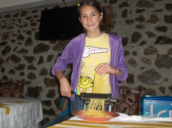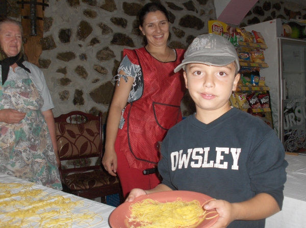 Descriere: La pensiunea ,,In poiana" am poposit peste noapte, am gasit gazdele pregatind un deliciu alimentar: taitei de casa. Am incercat si noi acest exercitiu gospodaresc.