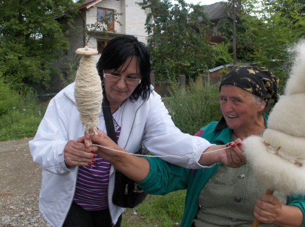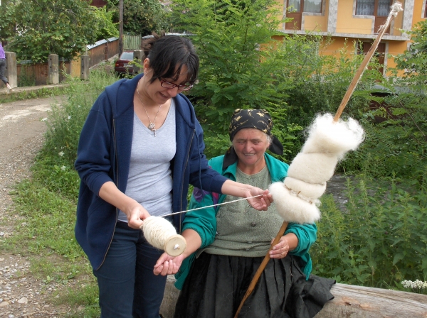 Descriere: In satul Glod am intalnit in fata unei case o batranica a locului care ne-a uimit cu un mestesug aproape necunoscut la oras: torsul lanii pe fus.