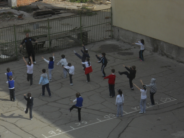 Descriere: In pauze uneori, dupa ore, la educatie fizica totdeauna executam exercitiile de dezvoltare fizica generala. Ca si cele de inviorare, pot fi facute cu succes si acasa, ori de cate ori simtim nevoia de miscare si nu putem iesi afara, in aer liber. Nu uitam sa deschidem larg fereastra! E o conditie foarte, foarte importanta! Totusi, e mai bine cand exersezi la aer, sub razele blande ale soarelui, de ce nu si batuti putin de vant. Astfel, ne organizam in formatie si ...la treba! Pe fruntile noastre apare sudoarea , dar vedem si luminita din privirea fiecaruia, veselia care ne stapaneste, sanatatea din obrajori. Stim ca miscarea inseamna un plus de sanatate, deci, la treaba!