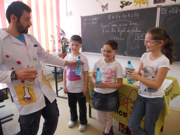 Descriere: Parteneriat cu Fndatia Fun Science-Invatare prin joc cu profesorul trasnit-tema 6 "Reactii chimice " .
