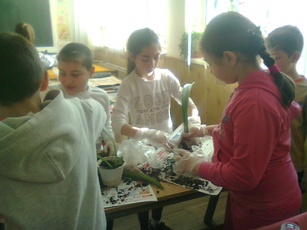 Descriere: Am ingrijit florile, am sadit plante in ghivece, am semanat seminte de flori in jardiniere.