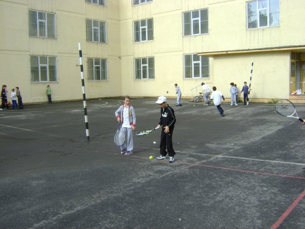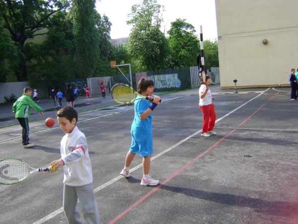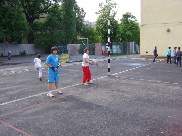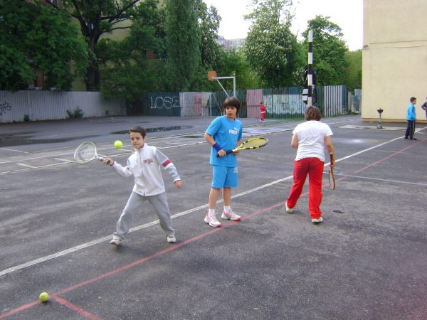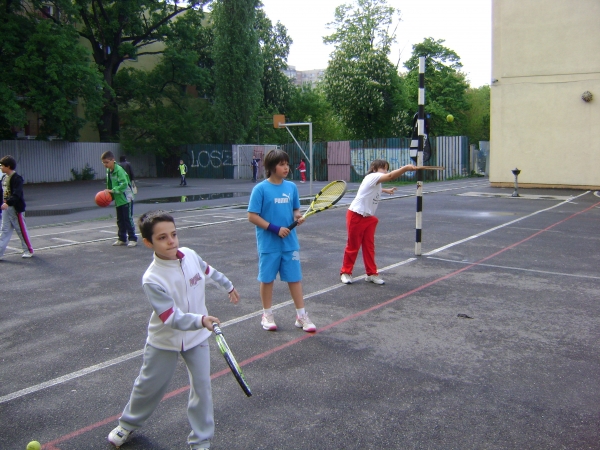 Descriere: Initiere in jocul de tenis de camp Etape: - inscrierea solicitantilor; - alcatuirea unor grupe si a unui orar; - conceperea unui ciclu de initiere-practicare; - prezentarea sportului cu racheta, a regulamentului, a materialelor sportive; - familiarizarea cu racheta-mingea-terenul; - insusirea notiunilor necesare pentru practicarea sportului: priza pe racheta, lovirea mingii (cu forehand, backhand, serviciul, stopul, lobul etc.); deplasarea in teren; pozitii ale corpului si ale rachetei in fazele jocului etc. - despre jocul de simplu 1 x 1 si jocul de dublu 2 x 2; - cum imbinam tehnica in functie de adversar; - in urma practicarii in mod constant elevii vor fi capabili sa practice jocul de tenis la nivel de amatori si vor sti cum sa joace un "game" si cat dureaza un set de tenis sau un meci; - este ubn sport in care stapanirea de sine si puterea de concentrare joaca un rol hotarator fiind de un real folos in viitorul elevilor cand vor deveni adulti.