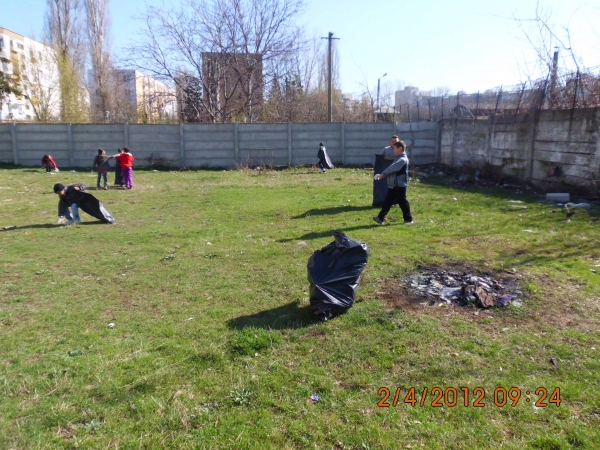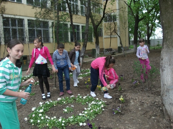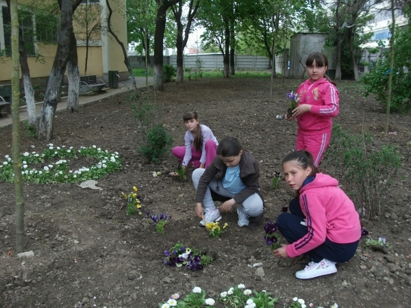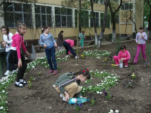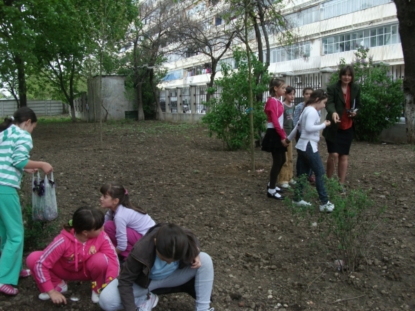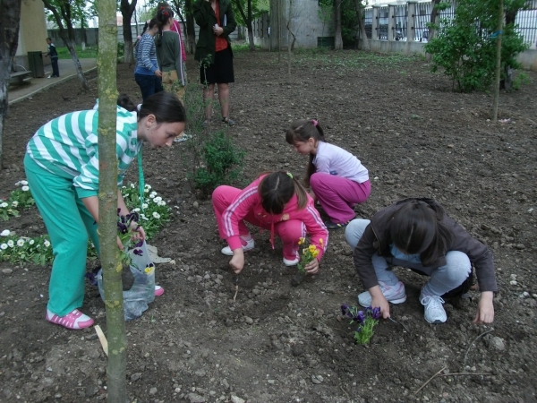 Descriere: E soare ,vreme placuta Ne luam saci si manusi sa mergem in curtea scolii Facem curat in jurul scolii noastre Plantam flori si pomi pentru a respira aer curat