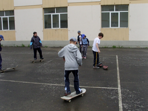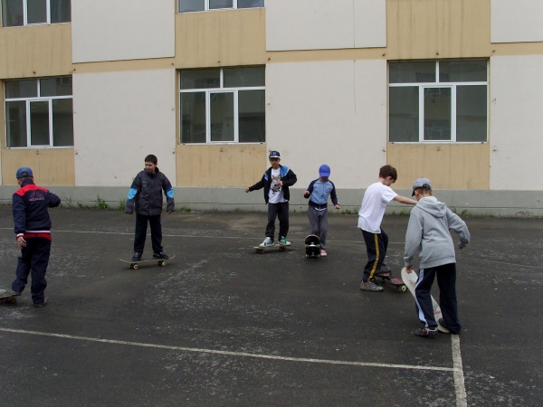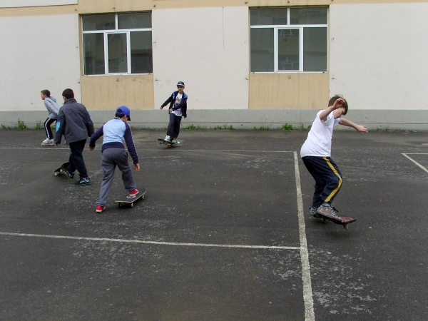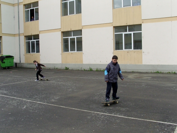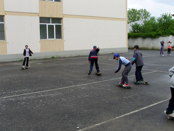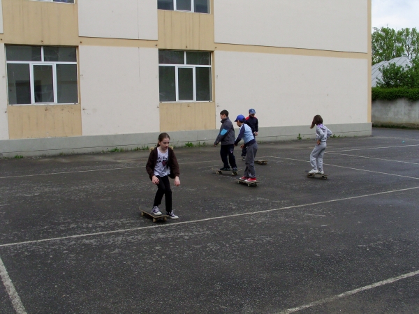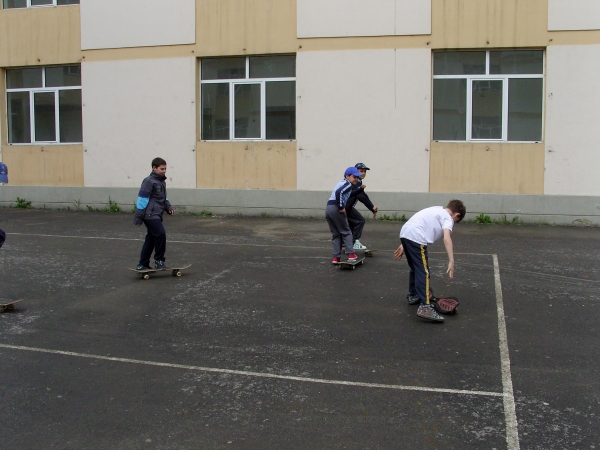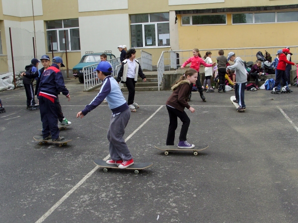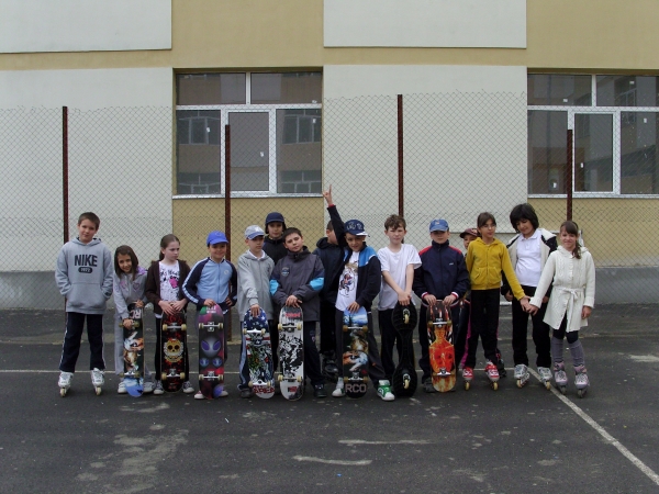 Descriere: Ne-am echipat corespunzãtor, ne-am luat patinele cu rotile sau placa de skate și ne-am adunat în curtea școlii, unde se alunecã foarte bine și ne-am simțit în siguranța. Am ales aceste sporturi pentru cã solicitã mușchii picioarelor, mușchii fesieri, abdominali, dar și cei ai brațelor. Ne-am simțit foarte bine și am avut motive de bucurie pentru cã ne-am dat cu patinele cu rotile și skate-ul, dar și pentru cã Bianca, colega noastrã, s-a alãturat clubului.