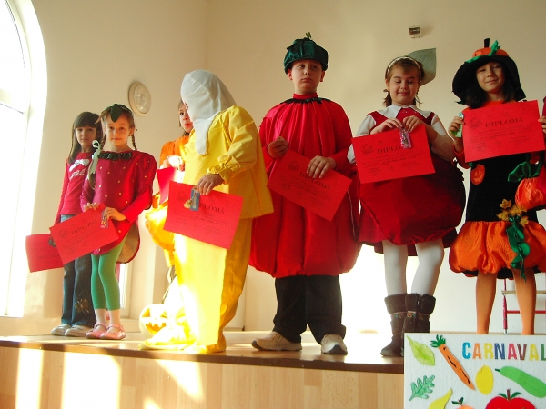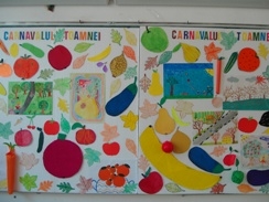 Descriere: Pentru a fi ºi mai convingãtori cã fructele ºi legumele sunt foarte importante pentru organism, am organizat un carnaval unde ne-am costumat în tot felul de legume ºi fructe, am defilat pe scena sãlii de festivitãþi a ºcolii, am recitat poezii ºi ghicitori despre fructe ºi legume, am realizat o expoziþie de fructe ºi legume fãcute din carton, hârtie coloratã sau creponatã. Totul a vrut sã fie o pledoarie pentru un consum cât mai multe fructe ºi legume.