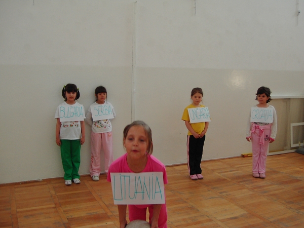 Descriere: Jocul rãmâne preferatul nostru. Astãzi, la sfârºitul orei de geografie, pentru a consolida cunoºtinþele însuºite despre þãrile Europei, ne-am dus în sala micã de sport ºi ne-am jucat „Þãrile”. Aºa am îmbinat utilul cu plãcutul, învãþând prin joc ºi miºcare.