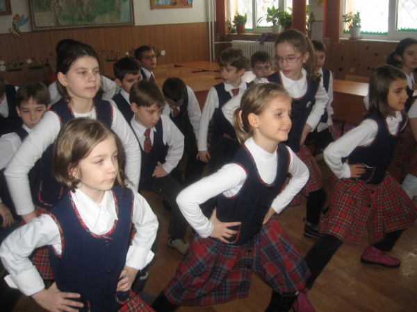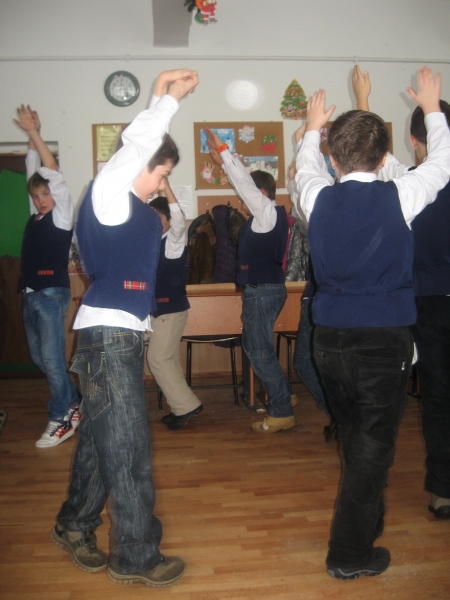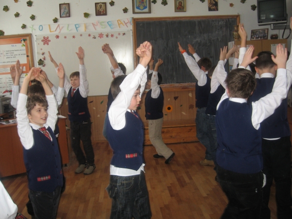 Descriere: Atunci cand vremea a fost neprielnica, elevii clasei a III-a A au gasit solutii de a se misca! Sala de clasa s-a transformat intr-un loc numai bun de dansat.