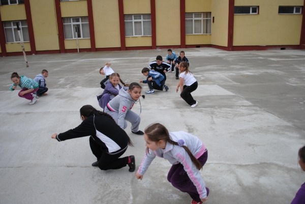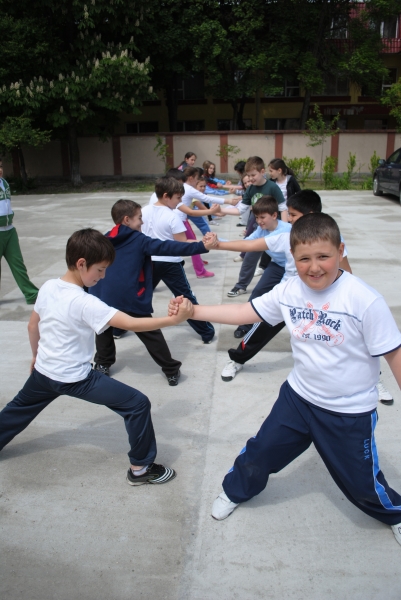 Descriere: Dornici de joacã am ieșit în curtea școlii, unde am desfãșurat mai multe jocuri de mișcare. Toți eram fericiți și chiar dacã unii dintre noi au mai luat câte o cãzãturã ne-am continuat distracția. Ne-am împãrțit în echipe și am început jocurile. Printre jocuri s-au numãrat: șarpele își prinde coada, fii cel mai puternic (individual și pe echipe), ulii și porumbeii, prinselea pe perechi, buchețelele, statuile, înghețata, roboțelul sau șotronul. Deși a fost o competiție, cu toții ne-am simțit bine... învinșii și învingãtorii! Abia așteptãm urmãtoarea activitate!