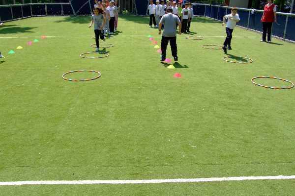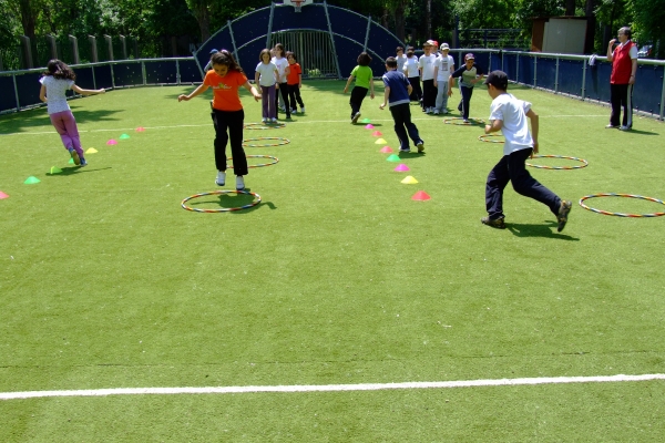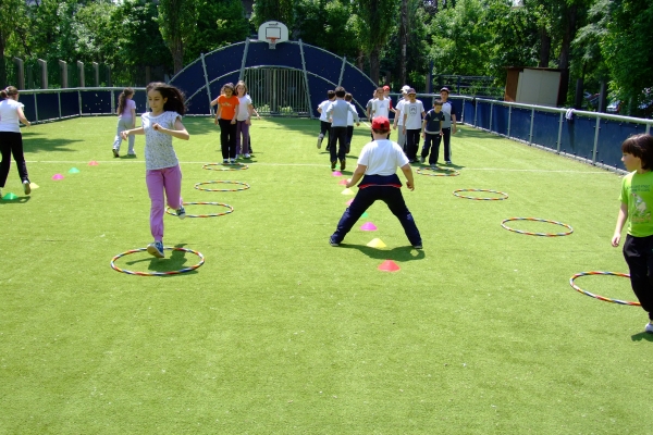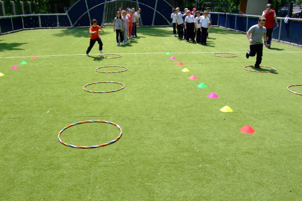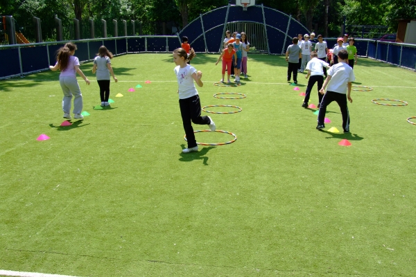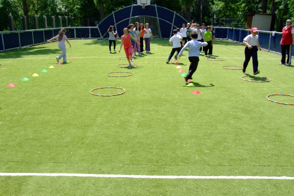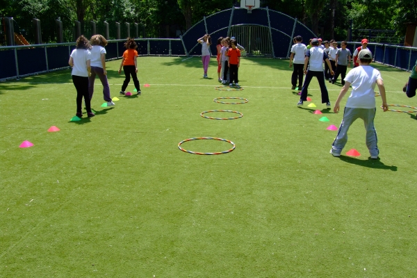Descriere: Ne place sa facem miscare si am inteles beneficiile pe care ea ni le aduce. Pe terenul de sport am asezat cercuri si alte obiecte pe care le-am transformat in obstacole sau jaloane. Am organizat stafete si ne-am distrat de minune.