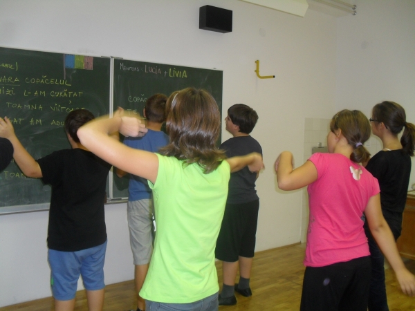 Descriere: Doamnele invatatoare Lucia Stanciu si Livia Topor invata copiii din Austria, Slovenia si Croatia, cuvinte in limba romana si jocul muzical "Copacelul".