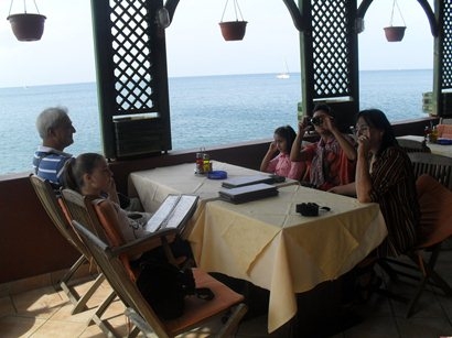 Descriere: Delegatia Scolii nr.110 "George Toparceanu" ia masa la malul marii in compania pescarusilor.