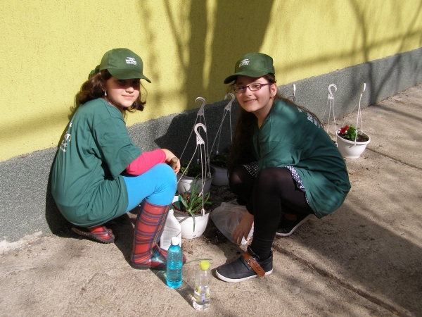Descriere: Elevii claselor a IIa C si a IIIa C cu ajutorul parintilor au plantat garofite si bulbi de dalii si canae in gradina scolii. Au facut miscare 2 ore,dar nu s-au plans, fiind mandri de munca lor.