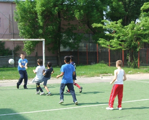 Descriere: Meci de fotbal organizat de o parte dintre baietii membri ai clubului.