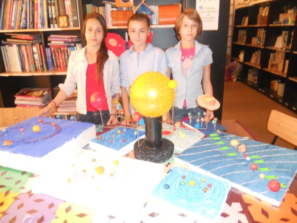 Descriere: Elevii clasei a IV-a B au realizat machete intruchipand Sistemul nostru solar la incheierea unitatii de invatare cu acelasi nume.