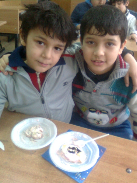 Descriere: Nimic nu e mai bun decat o prajitura,dar daca aceasta e facuta de noi ...e si mai buna !Si pentru ca ne plac fructele am ornat-o cu bucati delicioase de mar si banane ! Ce gustoasa e !