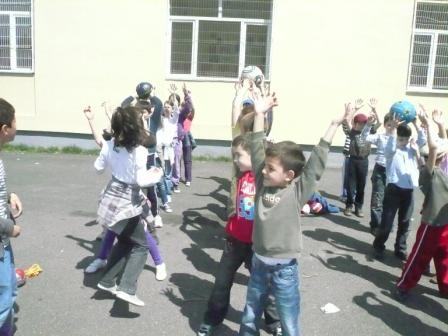 Descriere: Ne place sa ne jucam cu mingea. Membrii clubului nostru au organizat jocuri cu mingea in curtea scolii noastre.