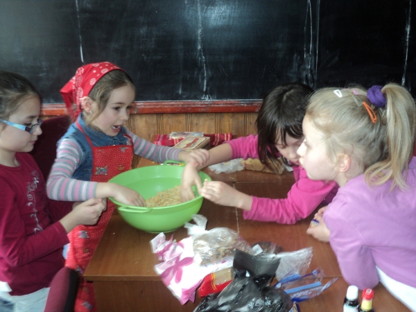 Descriere: Elevii clasei a II-a au descoperit cele 5 secrete ale nutritiei echilibrate din piramida alimentara.Ei au descoperit savoarea fructelor in salata de fructe pe au preparat-o singuri.