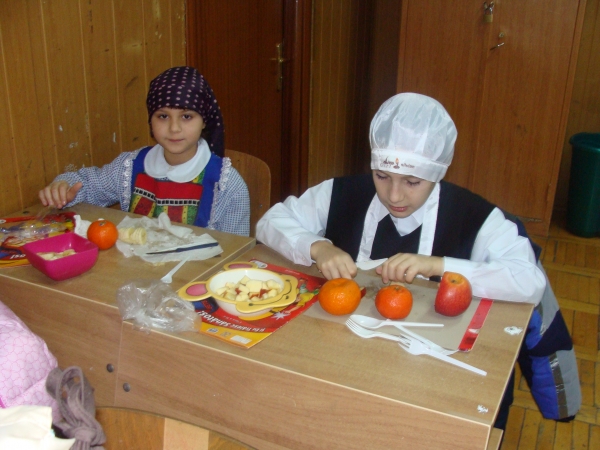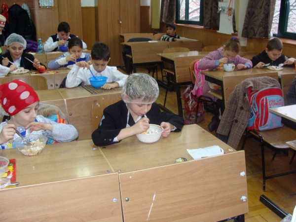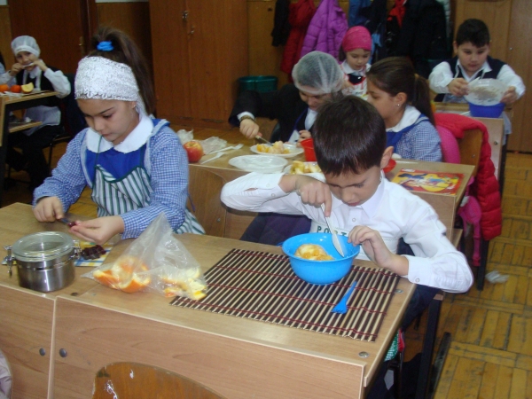 Descriere: Noi, elevii clasei a II-a A, indrumati de doamna profesor inv. primar Pantilie Maria, am pregatit o delicioasa salata de fructe. I-am dat savoare cu compot de ananas.Aspectul atractiv l-am realizat ornand-o cu frisca.