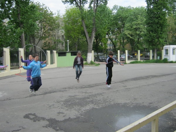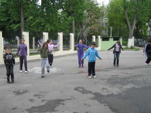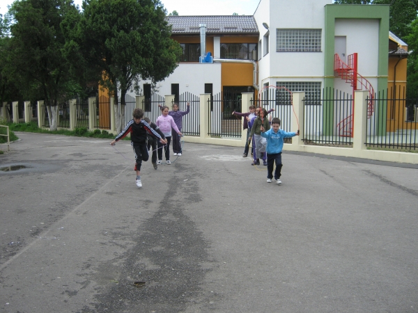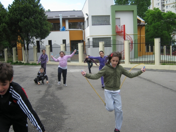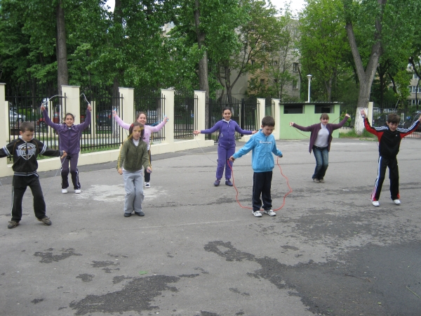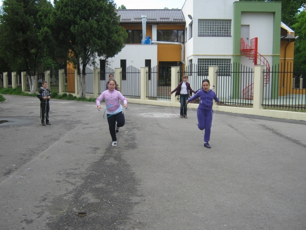 Descriere: Am sarit coarda incercand fiecare sa ne inaltam mai mult decat colegii din grup. Apoi, am facut o intrecere pe doua echipe: am sarit coarda din mers. Castiga cel care ajungea primul la doamna invatatoare. Ea ne poza si facea galerie. Ne-a venit ideea sa jucam sarpele. Stiti cine invartea coarda? Doamna invatatoare. Multumim, doamna, ca nu ne-ati lovit peste picioare cu coarda!!!