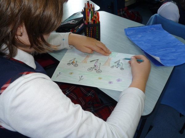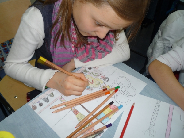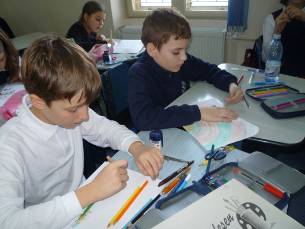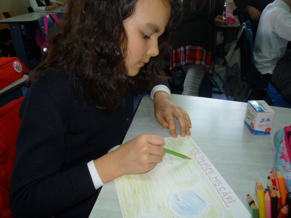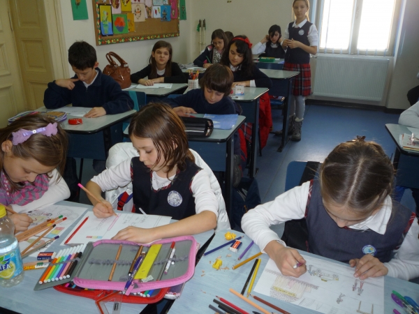 Descriere: Elevii au fost rugati sa-si imagineze si sa deseneze o sigla tinand cont de numele clubului (KIVNON-miscare) si motto-ul clubului "Mereu castigatori!" In imagini sunt elevii clasei a IV-a. Sigla propusa de ei a fost cea aleasa, dar au fost multe desene frumoase si la celelalte clase.