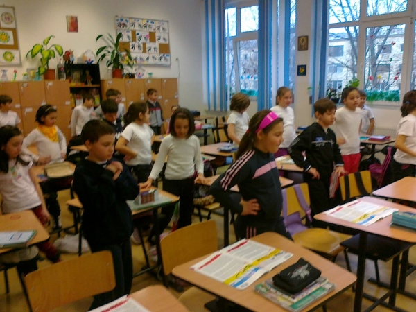 Descriere: În fiecare zi un copil din clasa noastrã este profesor de educaþie fizicã. Acesta antreneazã elevii cel puþin 5 minute cu diverse tipuri de exerciþii. Pe parcursul zilei, intervine dacã este cazul, cu exerciþii sau jocuri de energizare. Este ajutat, desigur, de ghidul „ªi eu trãiesc sãnãtos”. Fiecare abia aºteaptã ziua când îi vine rândul (în ordine alfabeticã) ºi lucreazã cu emoþii ºi drag alãturi de colegii lui. Exemplific toate acestea, cu fotografii.
