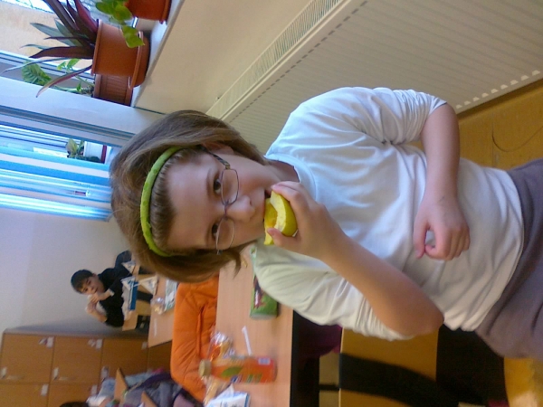 Descriere: Am purtat discuþii despre rolul ºi importanþa fructelor în alimentaþie. Am servit cu toþii gustarea: merele mult aºteptate sau alt fruct adus de acasã.