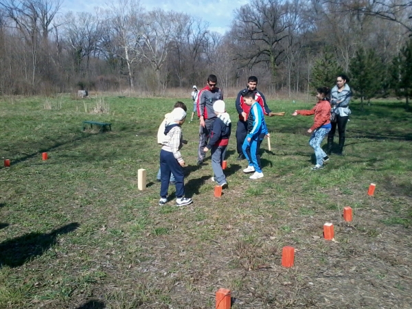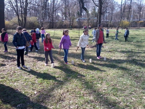 Descriere: In cadrul unui parteneriat cu alta scoala si cu voluntari, am organizat un concurs in Gradina Botanica. S-au organizat 20 de echipe cu 5 membri fiecare, din 2 scoli. Fiecare din cei 5 membri ai unei echipe trebuiau sa darame cuburile unei alte echipe formate tot din 5 membri. Daca daramau, cubul revenea echipei respective. Castiga cine darama mai multe cuburi.