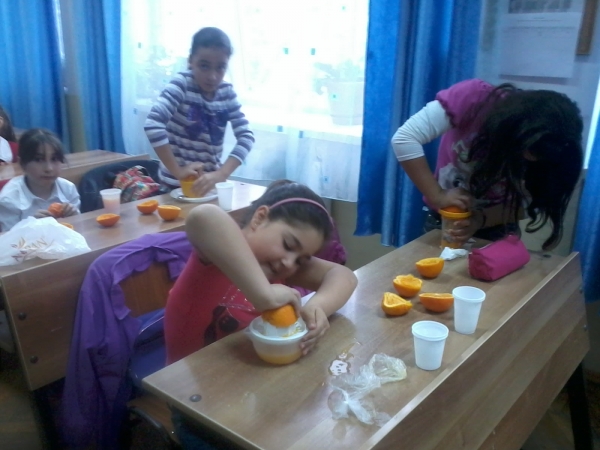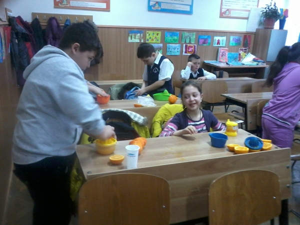 Descriere: Pentru promovarea unui stil de viata sanatos, am consumat fructe in diverse forme (intregi sau suc). Elevii si-au produs singuri sucuri de fructe delicioase!