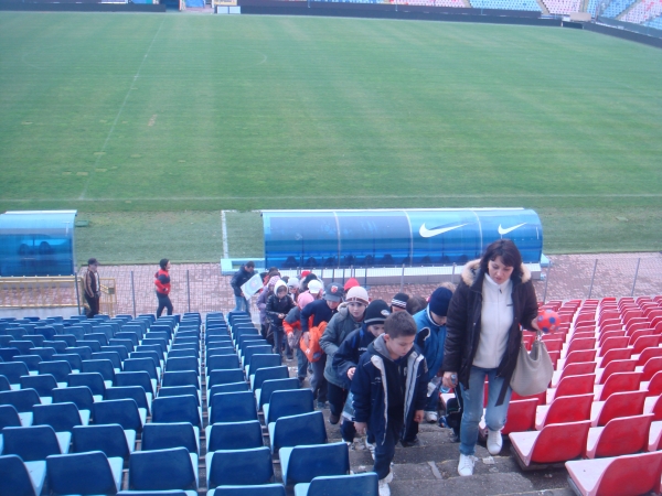 Descriere: Din fericire pentru noi ,am avut ocazia sa vizitam stadionul de fotbal ,, Steaua''.Este incredibil cum poate imensitatea unui asa stadion sa te convinga sa te apuci de sport, sa vrei sa devii in viitor, un ,,Briliant'' al fotbalului. Pacat ca vremea astazi nu a tinut cu noi, fiindca a plouat si nu am jucat un adevarat meci pe echipe:baietii clasei si fetele de la 3 B(BINEINTELES CASTIGAM NOI , BAIETII) Ne-am bucurat insa de tot ceea ce tine de acest stadion si am primit suficiente sfafuri despre educatia sportivilor si de cum isi ingrijesc ei corpul ,prin antrenamente fizice.