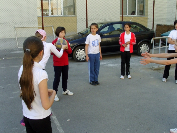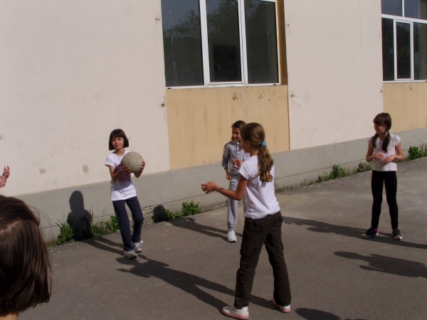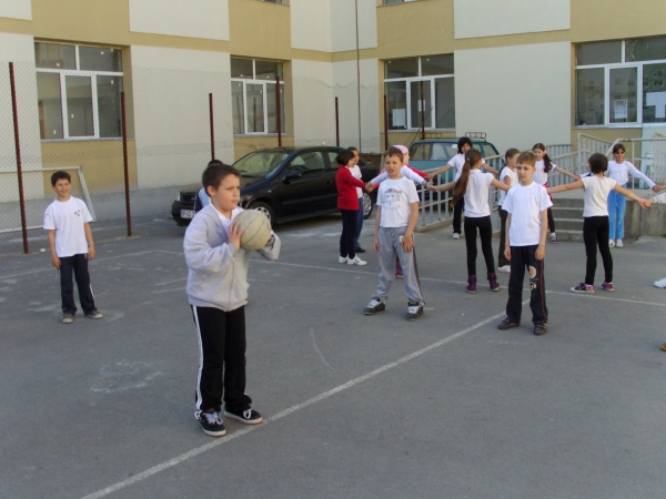Descriere: Am profitat de timpul frumos si ne-am adunat în curtea școlii sã învãțãm sã executãm pase de baschet. Am fãcut douã cercuri, unul format din fete și altul format din bãieți. În mijlocul cercului s-a aflat câte un copil care a aruncat mingea spre fiecare copil din cerc, iar acesta din nou la centru. Ne-am jucat, ne-am distrat și am aflat cât de îndemânatici, de agili, de reactivi și de rapizi suntem.