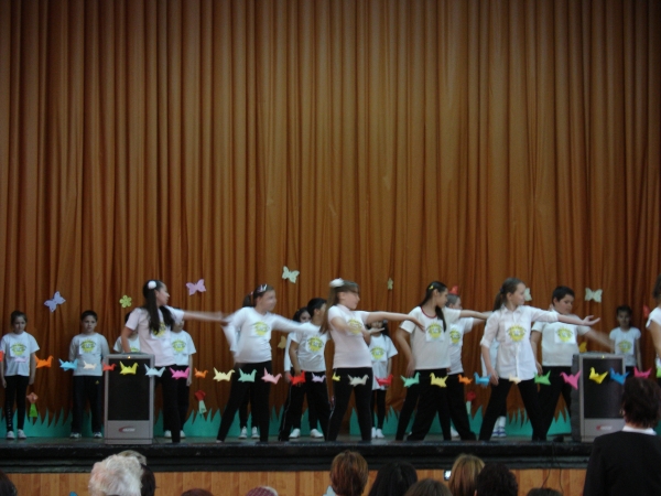 Descriere: Pornind de la activitatea anterioara ne-a venit ideea ca o parte din exercitii sa le combinam intr-un dans aerobic. Am repetat acest dans 30 de minute zilnic si ne-am laudat cu el in cadrul spectacolului dedicat Zilei Scolii (10 mai)