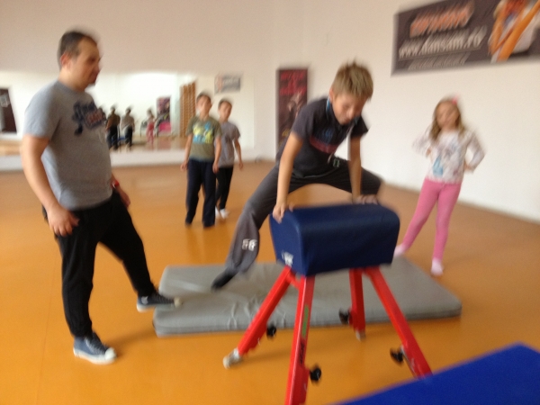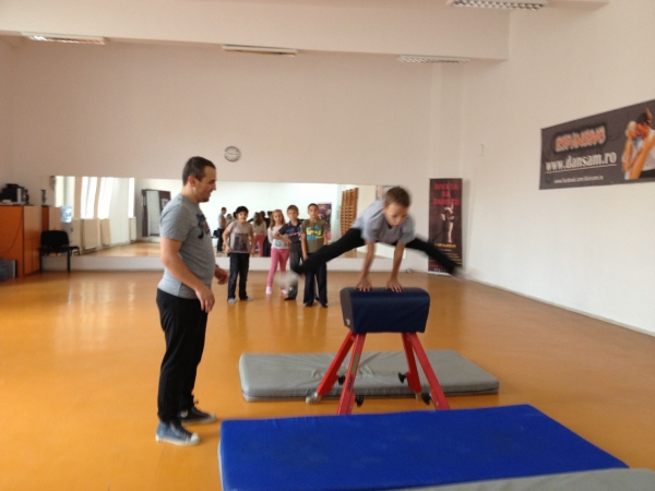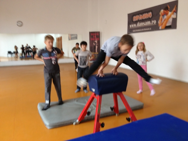Descriere: Elevii au invatat sa foloseascã adecvat exerciþiile specifice pentru dezvoltarea musculaturii spatelui, abdomenului, ºi membrelor. Saritura la capra a implicat si mult curaj din partea copiilor.