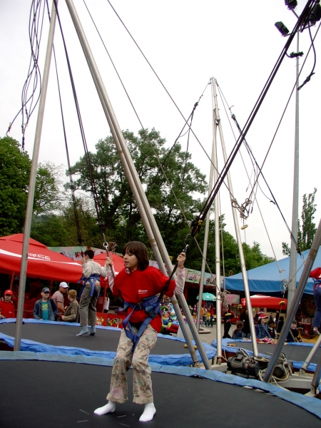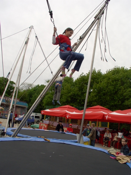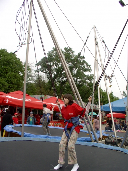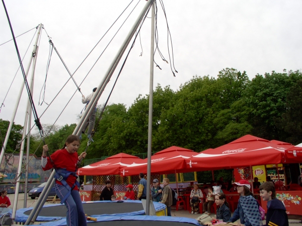 Descriere: 3D a fost in Herastrau si ne-a trimis aceste imagini cu ei sarind cu coarda elastica, la salteaua pneumatica si dandu-se intr-o masinarie haioasa, dar care le-a cam dat emotii. Cand am vazut pozele, i-am invidiat cu totii, mai ales c-aveau tricouri si sepci de la Coca-Cola (noi nu bem fiindca nu e sanatoasa).