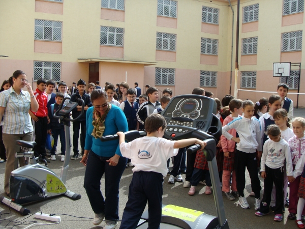 Descriere: Activitate desfasurata in colaborare cu cei de la EEA GRANTS, in cadrul programului 1-2-3-Let"s go, program ce vizeaza promovarea unui stil de viata sanatos pentru copiii din Bucuresti. Alaturi de specialistii din cadrul programului, elevii au invatat sa foloseasca aparate tip fitness - banda de mers si alergare, bicicleta. Copiii au fost foarte incantati, multi dintre ei folosind pentru prima data astfel de aparate. Aparatele au fost puse la dispozitia scolii noastre de catre cei de la EEA GRANTS. Activitatea s-a desfasurat pe data de 27 aprilie 2011, sub deviza "Traieste sanatos, ca sa cresti mare!"