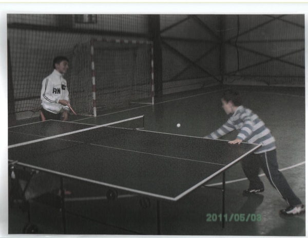 Descriere: Jocul s-a desfasurat in sala de sport la o masa de tenis dreptunghiulara, suprafata de joc a fost impartita in doua jumatati de un fileu vertical, cu o minge din material plastic si palete din lemn. Jocul s-a desfasurat la simplu, intre doua echipe, cu cate cinci jucatori fiecare, arbitrat de profesorul de sport care a controlat meciul. Jocul a fost castigat de echipa care a acumulat cele mai multe puncte, dintr-un numar par de jocuri.