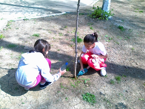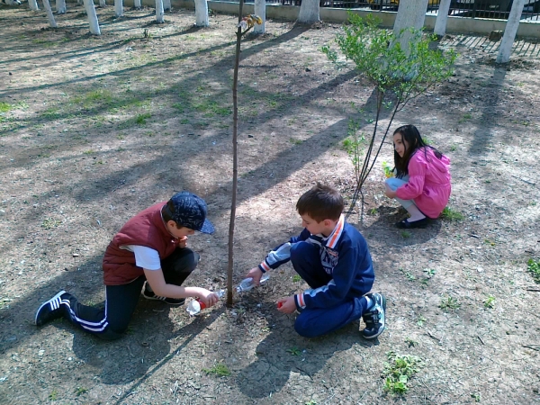 Descriere: Pentru cã e primãvarã ºi toatã natura s-a trezit la viaþã, am ieºit ºi noi în curtea ºcolii sã udãm pomiºorii abia plantaþi dar ºi arborii mai bãtrâni care adãpostesc atâtea pãsãrele.