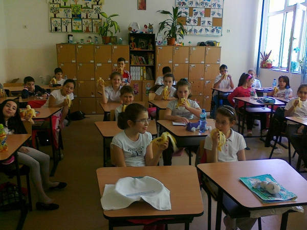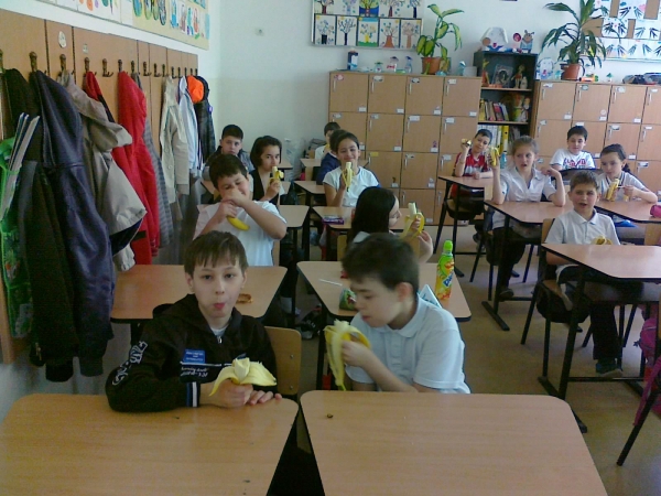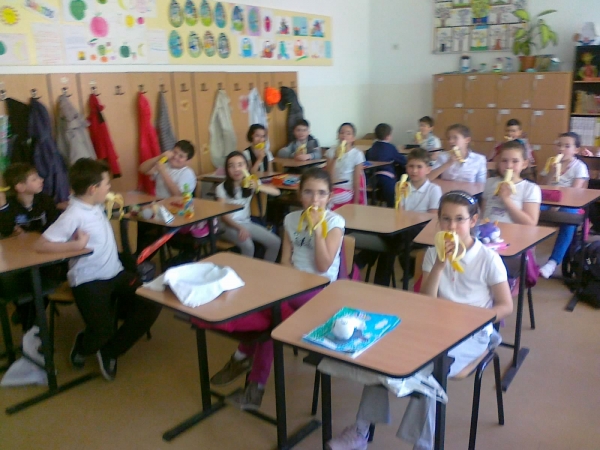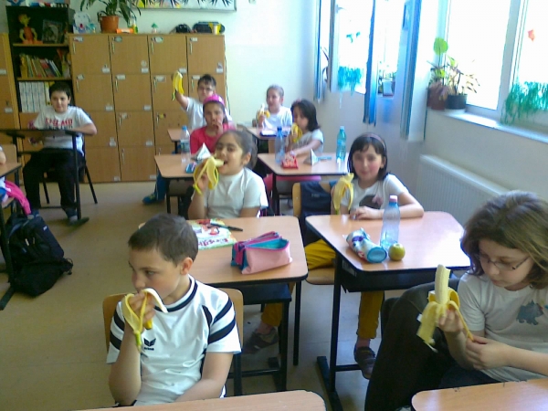Descriere: Dupã Sfânta Împãrtãºanie am þinut obiceiul de a nu mânca „de dulce”. Astfel, am servit cu toþii banane ºi ne-am bucurat de gustul delicios ºi conþinutul plin de vitamine al acestor fructe. Am simþit ce înseamnã hrana spiritualã ºi cât de sãþioase pot fi bananele.