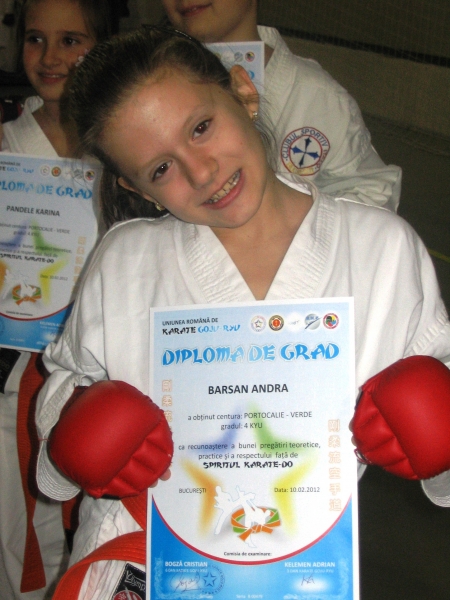 Descriere: Pe lângã gimnasticã, Andra e foarte buna ºi la karate. Se antreneazã din greu de cel puþin douã ori pe sãptãmânã.