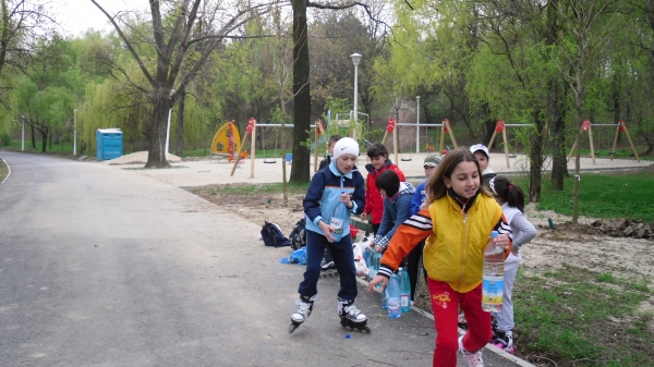 Descriere: Presedintele clubului imparte colectivul in trei grupe le propune modul de realizare a activitatii. Grupele nr. 1 si nr. 2, vor transporta sticlele cu apa inmanate de grupa nr. 3. Impreuna cu lucratorii din parc , elevii au udat trandafirii si pomii saditi. Fiecare grupa, prin rotatie a contribuit la buna desfasurare a activitatii. In finalul activitatii elevii au realizat un cros cu role pe aleile parcului.