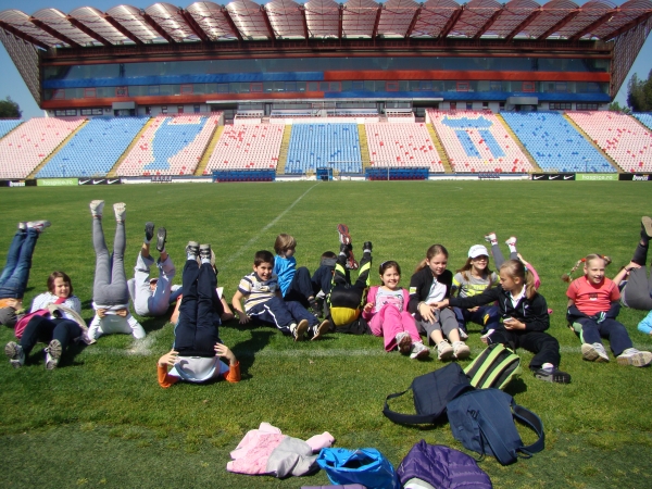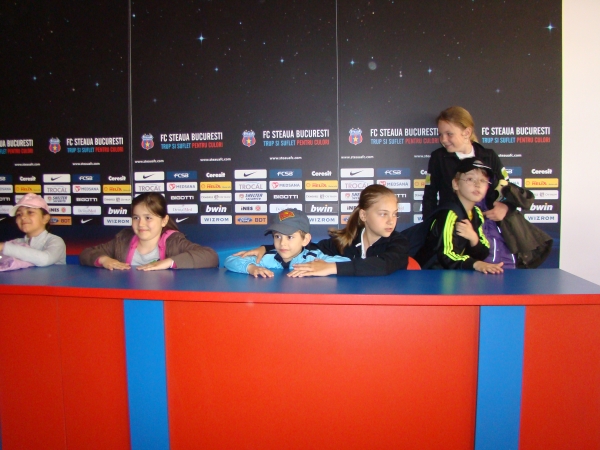 Descriere: Saptamana trecuta am mers cu totii la stadionul Ghencea . Extrem de fericiti, copiii au vizitat stadionul , terenurile, si au stat de vorba cu celebrii fotbalisti , modele ale multor dintre ei . Pe teren au alergat si au fost uimiti de poarta adevarata de pe stadion. A fost o vizita extrem de interesanta si de utila , mai ales muzeul unde am putut sa vedem campionii miscarii si trofeele lor.