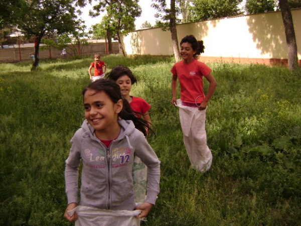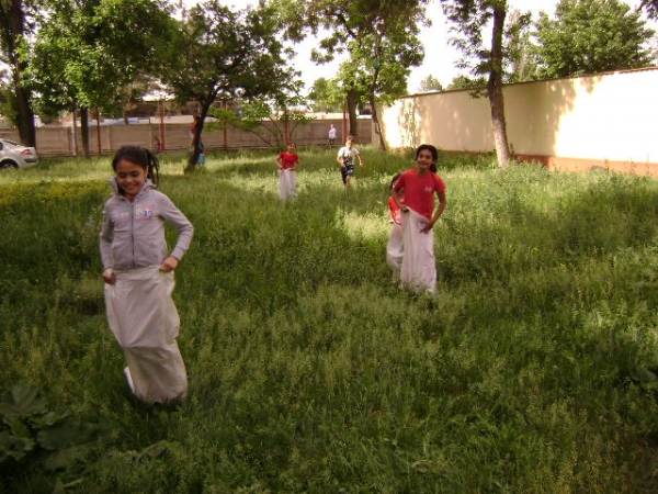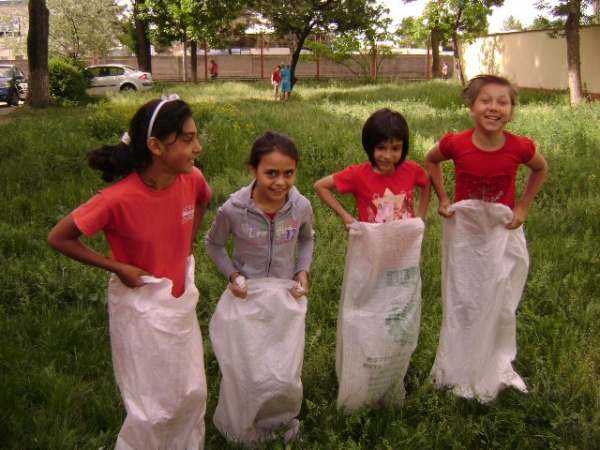 Descriere: Iarba verde i-a imbiat pe elevi la o cursa interesanta in saci