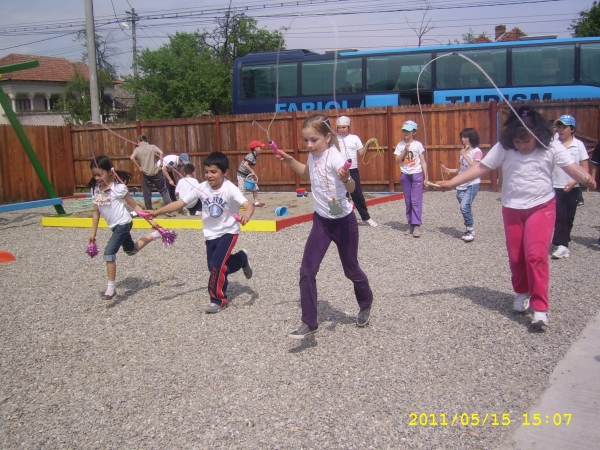 Descriere: Ce bine e cand faci miscare, atunci cand te afli in aer liber! In excursia organizata am gasit un prilej de a organiza un concurs de sarit coarda. Cele mai bune au fost, desigur,fetele, dar nici baietii nu s-au lasat. Au fost si ei dornici de a participa la intrecere si unii chiar au sarit ca adevarati profesionisti. Apoi am jucat jocul ,,Mingea frige!" si ne-am dat pana tarziu in leagane.