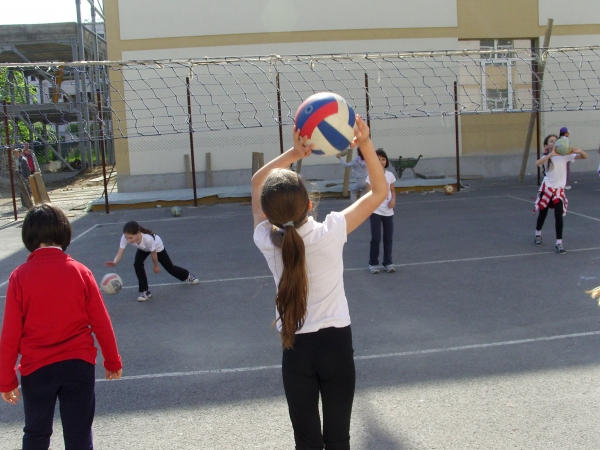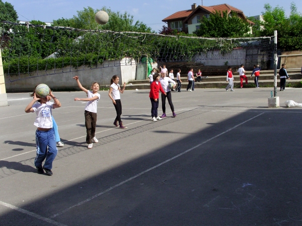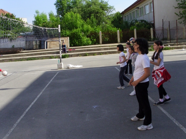 Descriere: Ne-am adunat în curtea școlii, ne-am împãrțit de-o parte și de alta a fileului și am executat pase de volei în perechi. Ca sã fie egalitate de forțe ne-am grupat fetele cu fetele și bãieții cu bãieții.