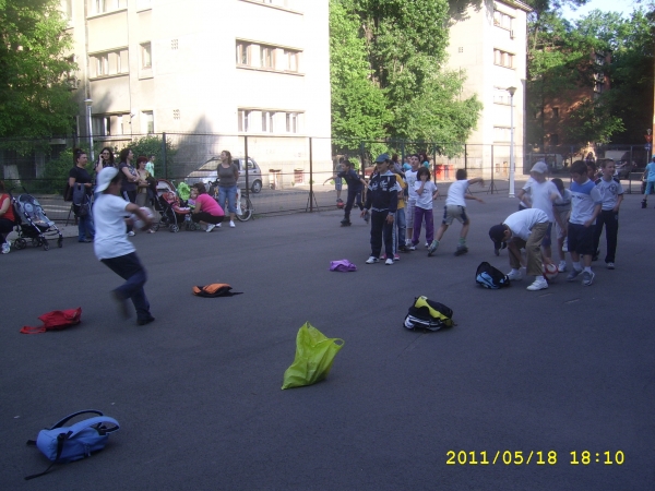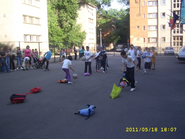 Descriere: Cum am invatat la ora de educatie fizica, facem si afara, la joaca! Ne-am impartit pe echipe si am condus mingea cu multa atentie si cu viteza, printre obstacole. A castigat, desigur, echipa cea mai rapida. Tare veseli am fost!!!