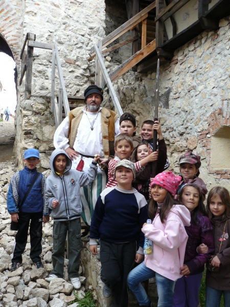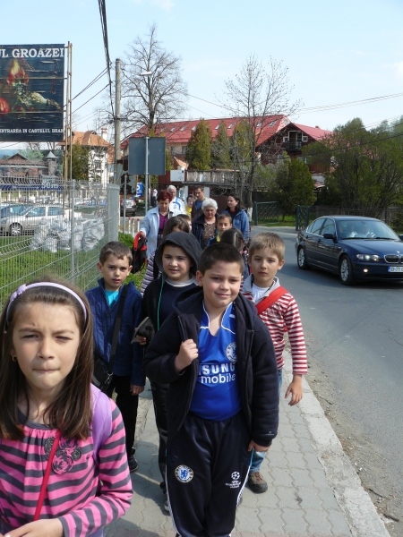Descriere: Excursia pe traseul Bucuresti-Bran-Pestera Fundata-Rasnov-Bucuresti a constituit un minunat prilej pentru a profita de vremea minunata si de a face miscare in aer liber. Cei din Clubul "Indraznetii orizonturilor deschise" i-a invitat la miscare pe elevii celor 6 clase a II-a din scoala, Nu stim exact cat am mers pe jos, dar am putem evidentia orele de miscare pe care le-am facut. Astfel, din parcare, am urcat panta pana la castelul Bran, apoi, evident, am coborat, dupa ce, cam doua ore, ne-am plimbat prin castel. Am mers apoi doi kilometri urcare/coborare panta pana la Pestera Fundata/Pestera Cetatii, aproximativ o jumatate de ora plimbandu-ne vizitand pestera. Nu puteam rata Cetatea Rasnov. In timp ce unii s-au asezat confortabil pe scaunele tractorasului local, noi am luat panta in piept, pe aproximativ o jumatate de kilometru. Am vizitat cetatea, am discutat si ne-am fotografiat cu strajerul, apoi am coborat, evident ... pe jos!!!!! Drumul la coborare a fost mult mai usor si l-am parcurs aproape alergand. Cand inaintam prea mult, ne intorceam la doamna invatatoare, apoi, iar ... la vale !!! Putem spune ca am dublat distanta! Si, cum nu ne jucaseram suficient, am oprit inspre casa intr-o poienita, unde ne-am mai jucat o jumatate de ora! Parintii si doamnele invatatoare se tot intrebau cand vom obosi. Nu au avut aceasta satisfactie. Am fost plini de energie pana cand am coborat din autocar. Putem spune ca a fost o zi plina foarte ... „miscatoare”!
