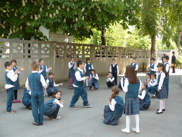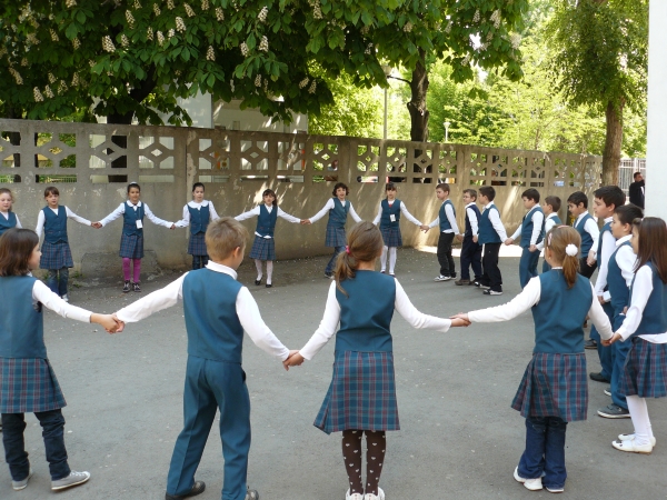 Descriere: Clubul "Indraznetii orizonturilor deschise" nu a uitat nici de traditii. Vineri, 13 mai, caldura i-a indemnat pe membrii de la clasa a II-a F sa paraseasca sala de clasa si sa se joace cu soarele. Cantecele populare invatate la ora de educatie muzicala le-au dansat in curtea scolii. Timp de o ora au incins minunate hore si s-au jucat multe din minunatele jocuri ale copilariei: „Gradinarul si florile”, „Ursul doarme”, „Albinita si floarea”, „Ratele si vanatorii”. Si totul la ... umbra unui minunat castan inflorit!
